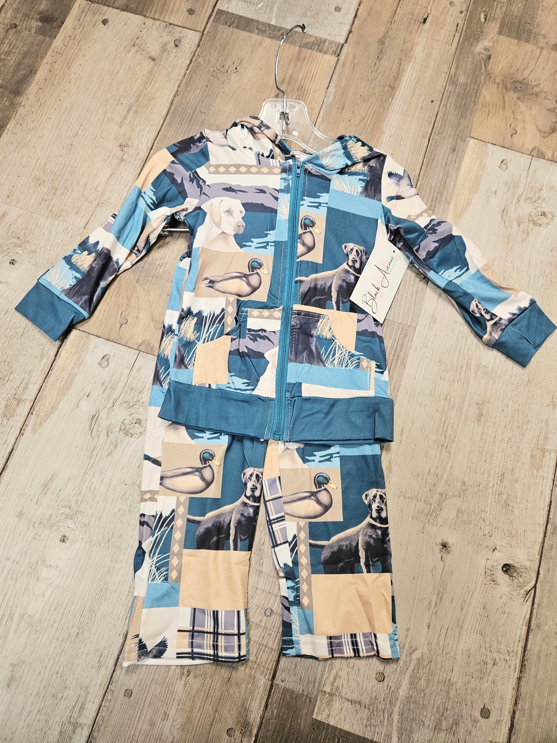 Experience the great outdoors in style with our Hunting Season Jogger Set. Featuring a unique hooded design adorned with yellow and chocolate labrador retrievers and ducks, this set is perfect for any hunting enthusiast. Stay comfortable and embrace your southern style while enjoying your favorite outdoor activities.